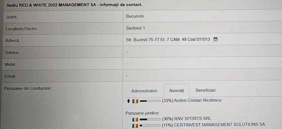 Înainte, Eugen Voicu și-a transferat acțiunile deținute pe numele său către Andrei Nicolescu, Dan Gătăianțu, omul său de încredere, pe care l-a adus în club și în Red&White și… Certinvest Management Solutions SA.