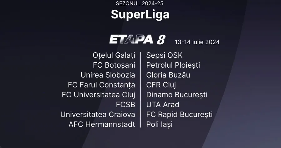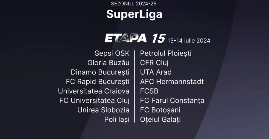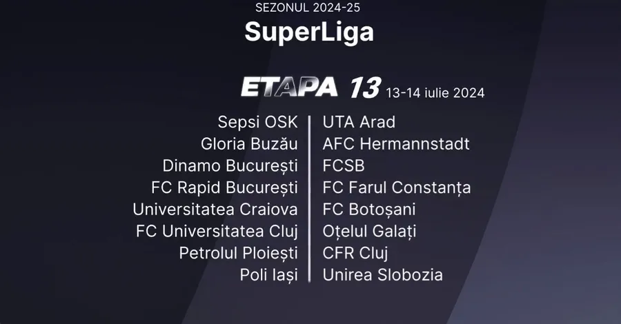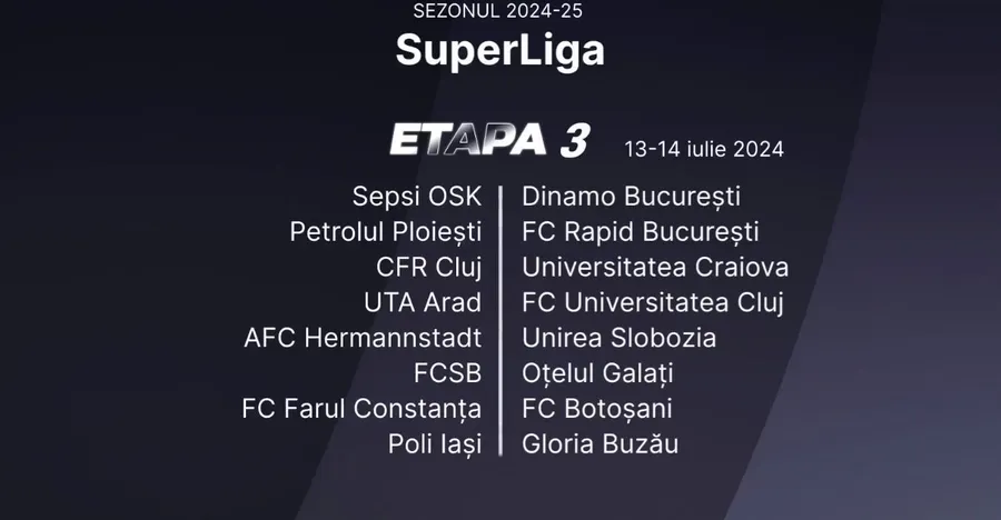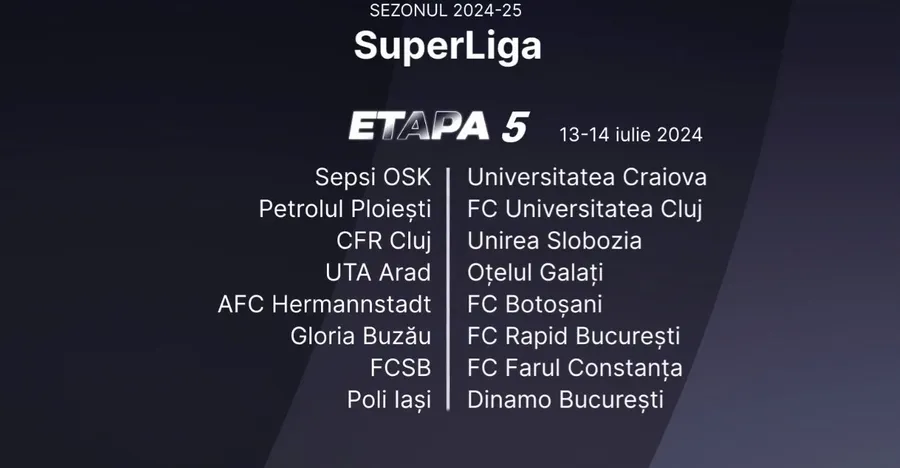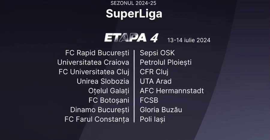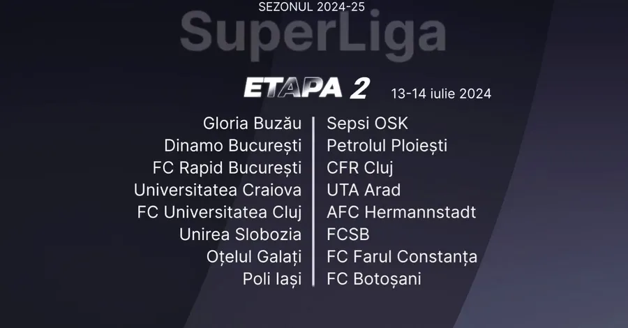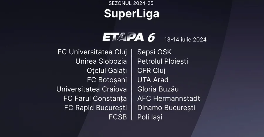 Amintim că noul sezon din Superliga României va debuta în mai puțin de două săptămâni, la data de 13 iulie, iar la linia de start vor fi nu mai puțin de 16 echipe: FCSB (campioana en-titre), CFR Cluj, Universitatea Craiova, Farul Constanța, Sepsi Sfântu Gheorghe, Rapid, UTA Arad, Oțelul Galați, FC Hermannstadt, U Cluj, Petrolul Ploiești, Poli Iași, Dinamo, FC Botoșani, Unirea Slobozia (promovată din Liga 2), Gloria Buzău (promovată din Liga 2).