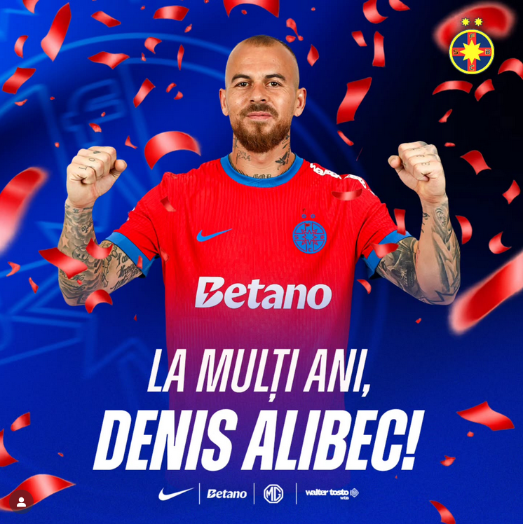 „Campionii României îi urează La mulți ani și multă sănătate lui Denis Alibec, jucător care a împlinit luni, 5 ianuarie, vârsta de 35 de ani. Clubul nostru îi dorește să aibă parte de cât mai multe succese în tricoul roș-albastru!