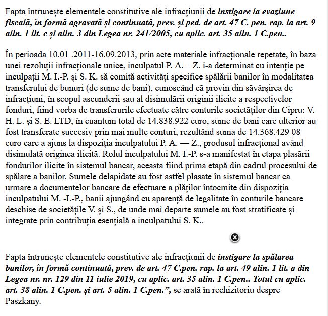 Ar fi efectuat 25 de acte infracționale prin firme de tip off-shore situate în Cipru.