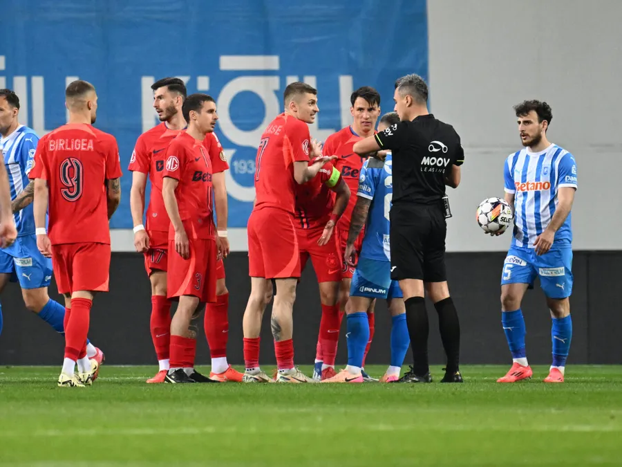 Horațiu Feșnic a acordat doar 5 cartonașe galbene, două jucătorilor de la Universitatea (Screciu și Oshima), trei celor de la FCSB (Crețu, Chiricheș, Șut).