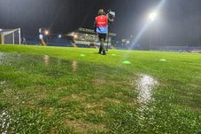La fel a început și meciul, printre băltoace și înjurăturile jucătorilor care nu au înțeles de ce trebuie să joace în astfel de condiții