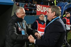 Gica Hagi il felicita pe Dan Petrescu dupa meciul de fotbal dintre CFR Cluj si FC Viitorul, contand pentru Liga 1 Casa Pariurilor, disputat pe Stadionul Dr. Constantin Radulescu din Cluj Napoca, vineri 14 februarie 2019. © FOTO:Razvan Pasarica/SPORT PICTURES