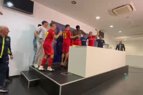 Fotbaliștii de la FCSB s-au dezlănțuit în vestiar și în sala de conferințe de presă după ce echipa bucureșteană a devenit campioană.