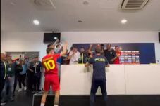 După ce FCSB a devenit campioană, jucătorii lui Gigi Becali au declanșat nebunia în vestiar, sărbătorind pe aceeași manea ca jucătorii lui Inter Milano.