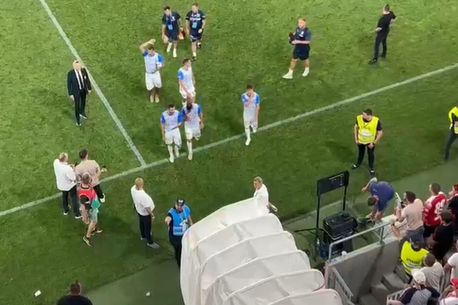 După fluierul de final al arbitrului, jucătorii de la Universitatea Craiova au întâmpinat ceva probleme în drumul spre vestiare.