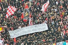 Ultrașii roș-albaștrilor au la dispoziție o peluză întreagă, dar nu au apelat la o scenografie la fel de grandioasă, preferând să se mențină doar la mesaje cu subînțeles pentru cei mai vechi rivali.