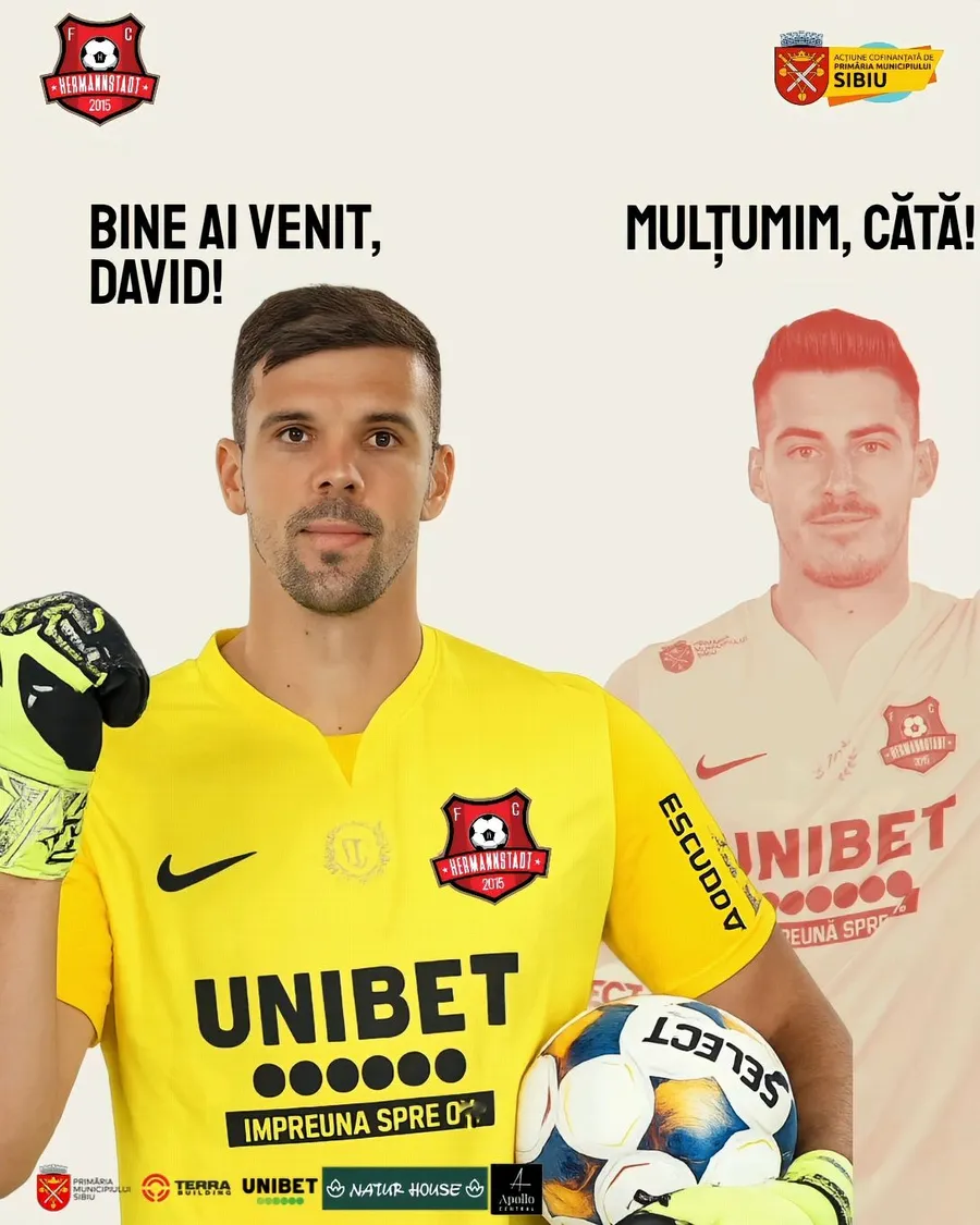 A.F.C.Hermannstadt și F.C.Argeș au ajuns la un acord cu privire la un schimb de fotbalisti cu caracter definitiv. Astfel, goalkeeperul Cătălin Căbuz va fi cedat la gruparea piteșteană, clubul nostru păstrând procente din următorul transfer, iar goalkeeperul David Lazar a semnat cu FCH pentru un sezon si jumătate. David are 34 de ani și este unul dintre cei mai experimentați fotbaliști din Superliga. Fostul internațional român are pe CV echipe ca Pandurii Tg.Jiu, F.C.Botoșani, Astra Giurgiu, Universitatea Craiova – cu care a câștigat SuperCupa României în sezonul 2021-2022, F.C.Buzău, F.C. Argeș și Vejle BK din Danemarca.