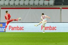 Min. 26: Ocazie mare ratată de Sepsi! Varga a șutat puternic cu piciorul stâng, de la circa 8 metri, lateral stânga, iar mingea s-a dus puțin peste poarta apărată de Scuffet!