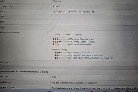 Eugen Voicu deține 41% din acțiunile Red&White. Dintre acestea, 33 de procente sunt direct pe numele său, iar alte 8 procente se află pe societatea Certinvest, după ce au fost achiziționate de Claudiu Florică, milionarul care s-a retras anul trecut din proiectul început de Voicu, Andrei Nicolescu și Dan Gătăianțu. În septembrie 2023, Renovatio, prin RNV Sport, s-a lăturat Red&White și a accesat 21% din acțiunile societății care conduce SC Dinamo 1948 SA.