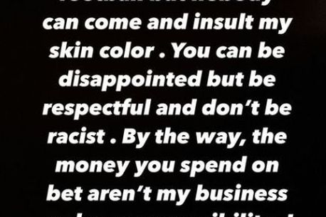 „Greșelile fac parte din fotbal, dar nimeni nu poate veni să-mi jignească pielea (n.r. culoarea pielii). Poți fi dezamăgit, dar te rog să mă respecți și să nu fii rasist. Apropo, banii pe care îi pierzi la pariuri nu sunt nici treaba mea și nici responsabilitatea mea. Sunt plătit să joc fotbal, nu să te fac pe tine mai bogat. Mulțumesc!”, a scris Joyskim Dawa, pe Instagram.