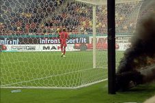 Ultrașii conduși de Gheorghe Mustață au aprins materiale pirotehnice care au eliberat un fum dens și au produs zgomote asurzitoare, iar apoi le-au aruncat direct spre poarta apărată de Ștefan Târnovanu.