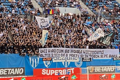 La începutul meciului, ultraşii au avut un mesaj care îi viza pe jucători şi pe Papură, în comparaţie cu Ilie Balaci, „Minunea Blondă” fiind comemorată la 5 ani de la dispariţie. „Unii n-au cum să moară niciodată/Alţii zici că-s morţi şi în teren şi pe bancă”.