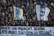 Suporterii Universității Craiova au afișat o serie de mesaje xenofobe în prima repriză a meciului cu Rapid București.