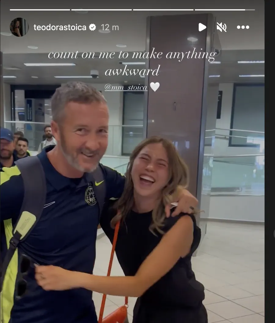 Teodora Stoica, fiica lui Meme, a venit personal să îl aștepte pe tatăl ei la Aeroportul Henri Coandă din Otopeni și a imortalizat momentul, pe care l-a și publicat pe Instagram.