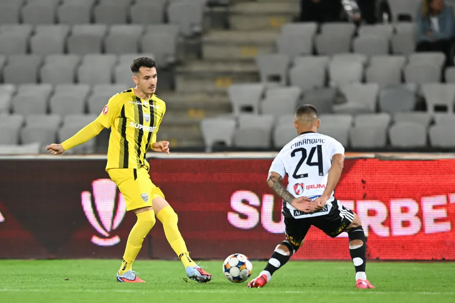 Și mai e o ciocnire interesantă, pe părți opuse, Musi versus Gheorghiță, tinerii plecați de la FCSB. Avântul afirmării după ieșirea din vestiarul campioanei le zdruncină însă claritatea, ambii văd „galben” în primul sfert de oră. Gheorghiță, la un cot pentru care până și Nistor îl dojenește, iar Musi, după o cădere în care el îl dojenește pe arbitrul Găman.
