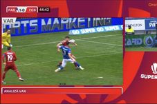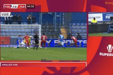 Jocul a fost întrerupt pentru ca arbitrii să poată verifica faza cu ajutorul sistemului de arbitraj video, însă imaginile pe care le-au primit Andrei Moroiță și Valentin Avram, oficialii VAR, au fost de calitate foarte slabă.