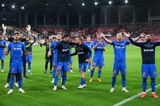 Fotbalistii stelisti Risto Radunovic, Valentin Cretu,Florinel Teodor Coman,Mihai Daniel Lixandru, Stefan Tarnovanu, Adrian Gheorghe Sut si David Raul Miculescu saluta galeria dupa meciul de fotbal dintre FCSB si Universitatea Cluj, din cadrul Superligii Superbet, desfasurat pe Arena Nationala din Bucuresti, luni 2 octombrie 2023. © FOTO:Razvan Pasarica/SPORT PICTURES