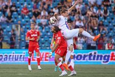 Marcelo Freitas lovește mingea cu capul, însă balonul se duce peste poartă.