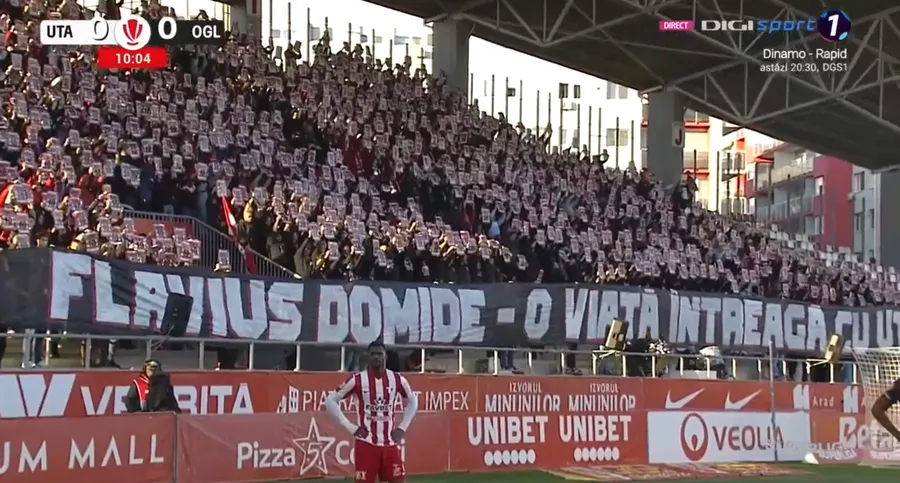 Meciul a fost întrerupt câteva zeci de secunde, pentru a i se aduce un omagiu lui Flavius Domide.