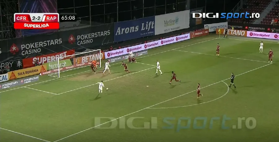 Fostul fotbalist al lui CFR Cluj a avut în gheată reușita de 3-2, însă execuția a fost una complet ratată.