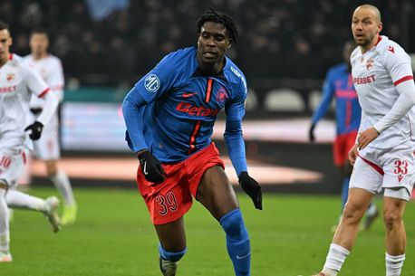 Este vorba despre Jordan Gele, care a prins doar opt minute în derby-ul cu Rapid și nu a jucat în meciul de pe teren propriu contra oltenilor, deși era pe banca de rezerve a „roș-albaștrilor”.