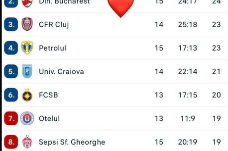 Lider în Superliga este în continuare U Cluj, cu 29 de puncte, în timp ce Dinamo e pe 2, cu 24 de puncte. Podiumul e completat de CFR Cluj, cu 23 de puncte, însă tot 23 de puncte are și Petrolul, ocupanta locului 4. Vin apoi Universitatea Craiova și FCSB, cu 21, respectiv 20 de puncte.