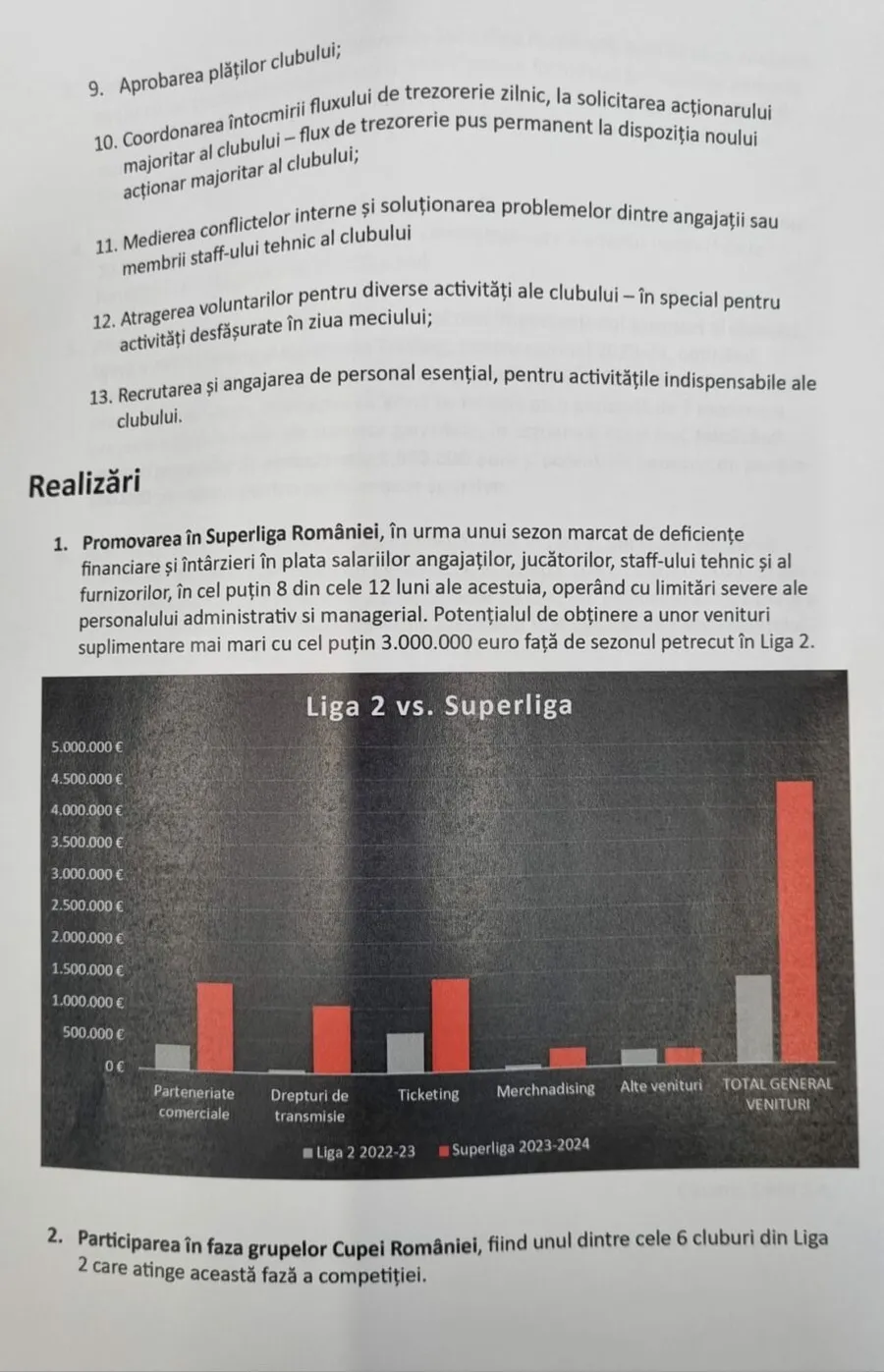 UPDATE 15.00: Înainte de conferința de presă de după încheierea Adunării Generale a Acționarilor, Vlad Iacob a împărțit jurnaliștilor prezenți la „Arcul de Triumf” foi cu raportul de activitate din sezonul 2022-2023.
