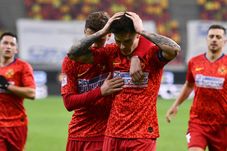 Bucurie a fotbalistilor stelisti dupa un gol marcat cu Iulian Lucian Cristea, Dennis Man si Ionut Daniel Vina in meciul de fotbal dintre Gaz Metan Medias si FCSB, contand pentru Liga 1 Casa Pariurilor, desfasurat fara spectatori pe Stadionul Municipal din Medias, luni 23 noiembrie 2020. © FOTO:Razvan Pasarica/SPORT PICTURES