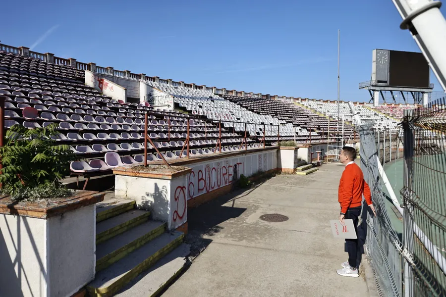 Gradenele comode au primit, în timp, veșmântul scaunelor alb și roșii. Altele, în zonele mai bune, sunt gri și par mai noi și mai rezistente. Acum, cochiliile de plastic sunt decolorate, arse de soare, ciobite de pintenii suporterilor între bucurii și păcat sau înghițite de vegetația născută dintre ridurile plăcilor de beton. Peste tot așteptarea pare că a mistuit speranța.