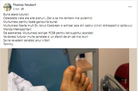 De asemenea, mulțumesc echipei FCSB pentru tot suportul aspordat! Vă doresc tuturor multă sănătate și un sfârșit de an cât mai bun! Să ne revedem sănătoși anul viitor!”, a scris Thomas Neubert pe contul său de Facebook.