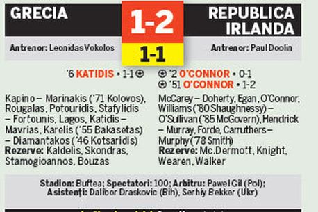 A doua partidă din grupa A, Grecia-Irlanda, s-a jucat la Buftea