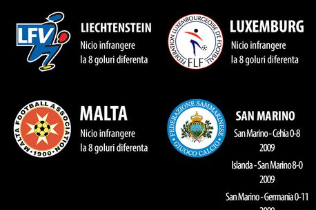 Ca să înțelegem mai bine unde ne situează înfrângerea cu Germania, vă prezentăm cele mai slabe rezultate ale echipelor Under-21 ale țărilor pe care în vremea „Generației de Aur” ne miram de ce le-am dat doar șase goluri. De la Andorra și până la San Marino, doar doi dintre „piticii” Europei au fost învinși la diferențe mai mari de 8 goluri în ultimii 5 ani. Statistica acoperă zeci de meciuri disputate de naționalele de tineret.