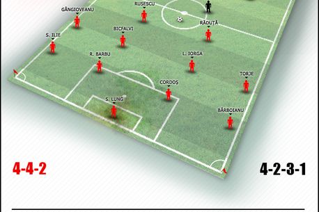 Min. 73 Săndoi schimbă și portarii. Schimbare la România. Iese Silviu Lung jr, intră Cezar Lungu
