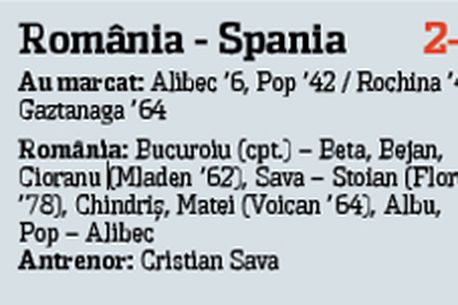 Tracul s-a resimțit în tabăra românilor și spaniolii, campioni europeni, puteau deschide scorul încă din minutul 3. Elevii lui Cristian Sava au reușit să intre în joc grație reușitei lui Alibec (‘6).