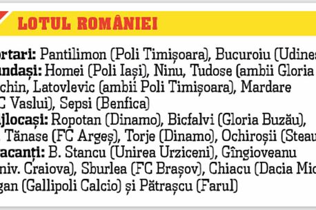 Emil Săndoi, selecționerul naționalei mici, a convocat 20 de fotbaliști pentru turneul lusitan din 11-16 mai 2008.