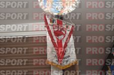 Fularul de la Brazilia – România din 2011 și, în stânga, fanionul roșu de la Liverpool – Milan