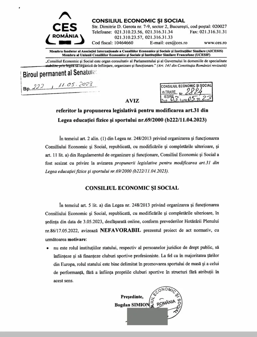 Miercuri, 10 Mai, Consiliul Legislativ, al cărui președinte este Florin Iordache, fostul ministru al justiției, a acordat vot negativ. A doua zi, joi, un alt consiliu și-a exprimat punctul de vedere și, din păcate pentru fanii echipei din Ghencea, și acesta a fost negativ. Este vorba de Consiliului Economic și Social.