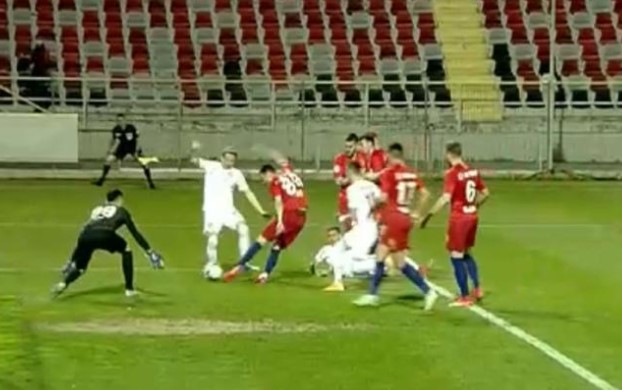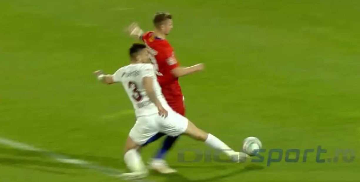 Fapte: în min. 81 la o fază confuză în careul celor de la FCSB, mingea ajunge în suprafața de poarta unde Adrian Șut, încercând să degajeze mingea, îl lovește în picior pe Ciprian Deac.