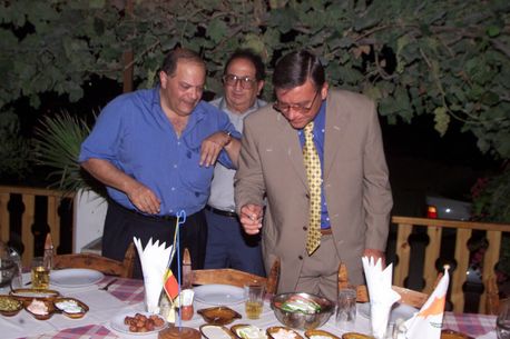 Lefkaritis și Mircea Sandu pozează pe după gât, undeva în stânga imaginii.