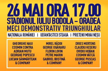 „Pe 26 Mai, la Oradea de data aceasta, va avea loc a doua ediție a evenimentului dedicat lui Mihai Neșu. Rugăm suporterii care doresc să participe la meci să se unească în grupuri și să solicite biletele din timp. Vom avea și anul acesta tricouri și eșarfe speciale, în culorile nationale, pentru a fi în ton cu anul deosebit în care ne aflăm, cel al centenarului. Meciul va fi urmat de o gală caritabilă. Pentru detalii referitoare la gală va rugăm să ne contactați în căsuță de mesaje private! Vă așteptăm cu mare drag!”, a se arată într-un mesaj postat pe pagina citată.