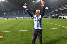 Aurica Beldeanu saluta galeria in startul meciului de fotbal dintre Universitatea Craiova si Farul Constanta