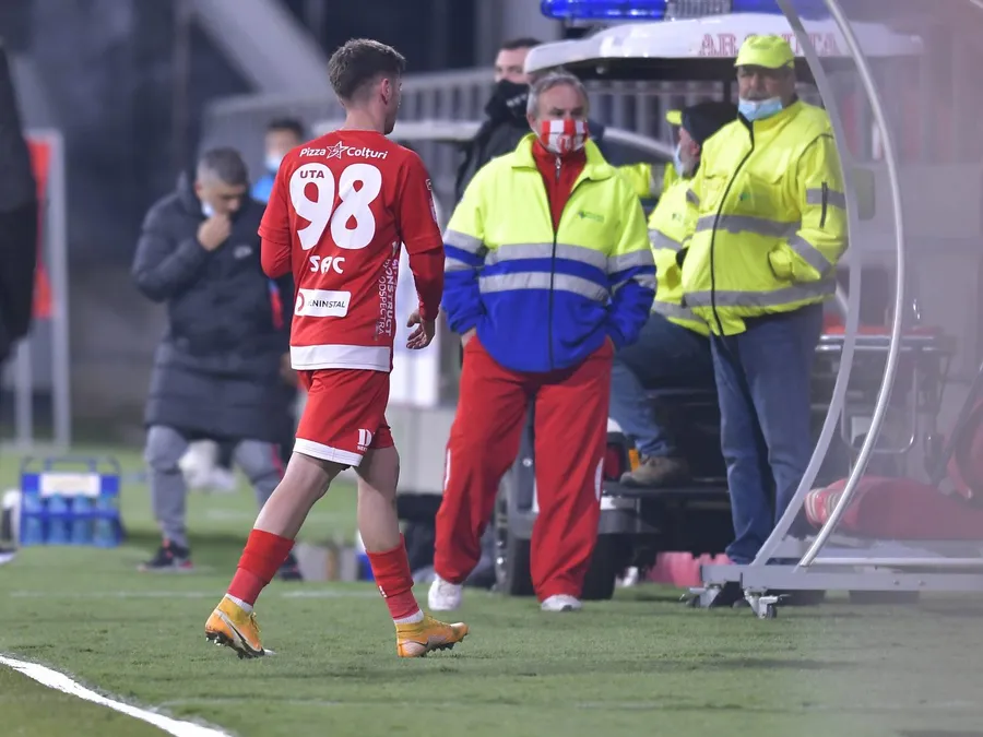 Min. 43. UTA Arad rămâne în inferioritate numerică! Damian Isac a fost eliminat de arbitru.
