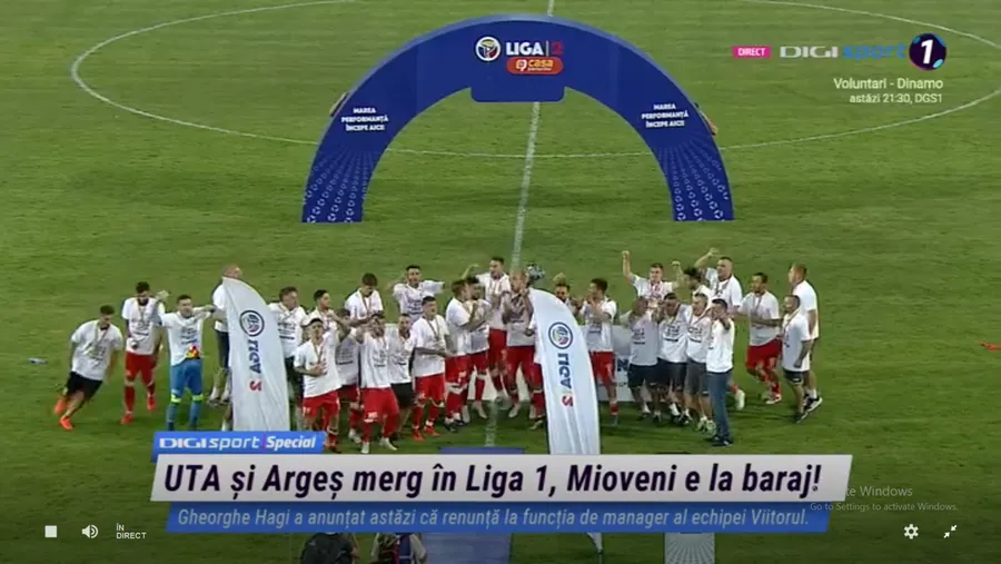 Final dramatic al play-off-ului din Liga2. UTA și FC Argeș au terminat la egalitate, 1-1, și merg la braț în prima ligă, după ce Rapidul a egalat-o în prelungiri pe Turris. Arădenii revin după 12 ani în Liga 1 și au declanșat nebunia pe teren, imediat după meci.