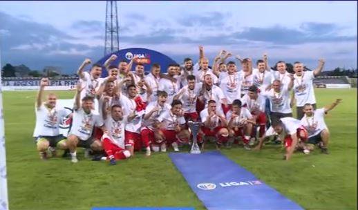 Imediat după fluierul final de la Pitești, arădenii au declanșat sărbătoarea chiar pe teren. Jucătorii lui Laszlo Balint au primit trofeul chiar din partea gazdelor de la FC Argeș.