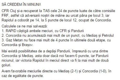 „Este clar că după această decizie șansele noastre de a mai rămâne în prima ligă s-au spulberat! Nici norocul nu ne mai scapă! Sincer, nu credeam că CFR va primi punctele înapoi. Asta e, mergem în Liga 2, ce să facem? Nu vom renunța la echipă. Mergem în eșalonul secund și vom construi acolo, în liniște, viitorul Rapidului. Nu va mai fi stresul din prima ligă”, a declarat Valerii Moraru pentru www.prosport.ro.
