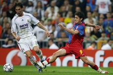 Steaua Bucaresti's Valentin Badea (R) fights for the Real Madrid's Sergio Ramos during a Champions League Group E football match at the Santiago Bernabeu stadium in Madrid, 01 November 2006. AFP PHOTO JAVIER SORIANO.