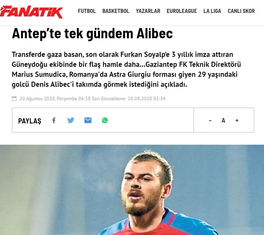 „Gaziantep, care a avut succes în negocierile cu jucătorul, s-a înțeles și cu clubul din România pentru a realiza transferul. Este una dintre cele 3 întâriri pe care și le doreau roș-negrii”, anunță turcii de la Fanatik.