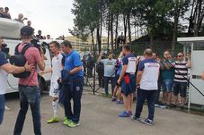 Unul dintre liderii verstiarului Stelei, Alin Predescu, s-a pus în genunchi în fața peluzei, în timp ce un alt fotbalist era dezbrăcat de suporterii care au sărit gardul peluzei, la finalul celor 90 de minute.