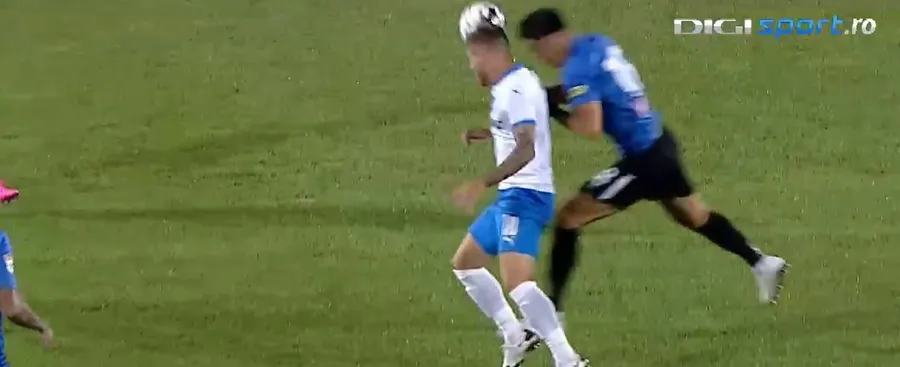 MIN 36. Ciobanu îl lovește pe Bic și încasează cartonașul galben.